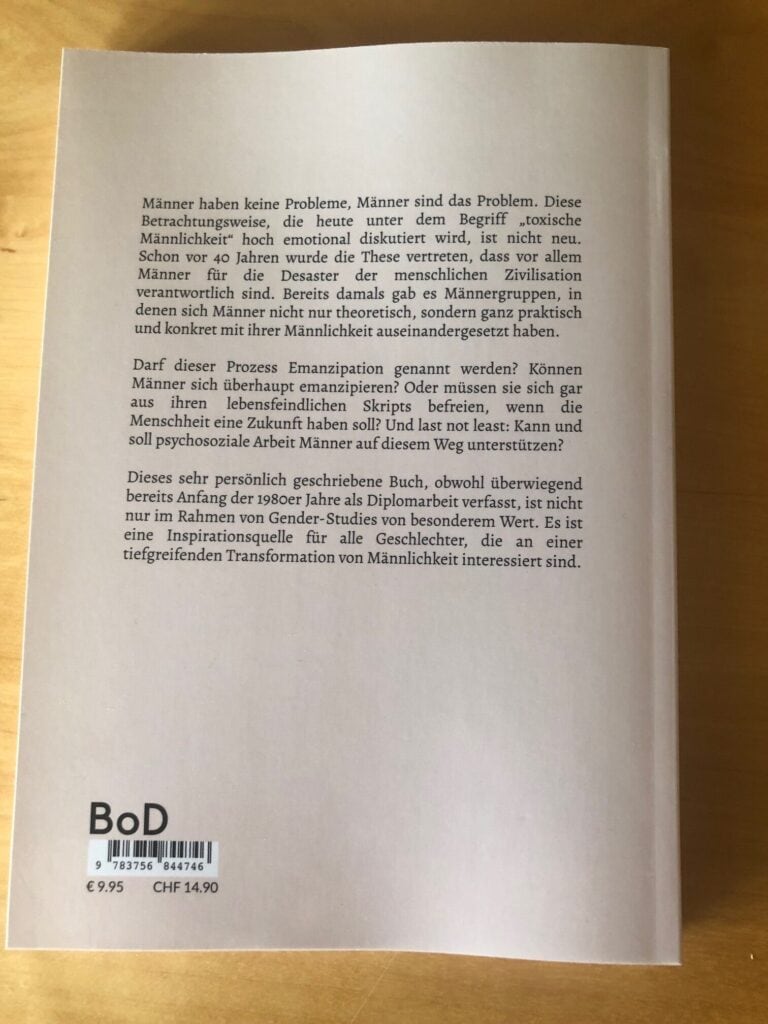 Ist diese Arbeit nicht Schnee von gestern? Einerseits Ja … und allein schon deswegen interessant. Wenn heute über Themen rund ums Mannsein, um Machtstrukturen und Perspektiven der Veränderung „toxischer Männlichkeit“ gesprochen wird – sei es anläßlich von #metoo, Gendern oder des „Orgasm Gap“ – sind sich viele nicht bewusst, welche Geschichte dieser Diskurs auch unter Männern bereits hat.